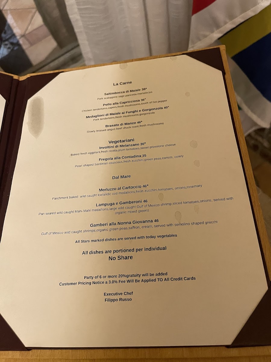 Da Filippo Autentica Cucina Italiana Menu